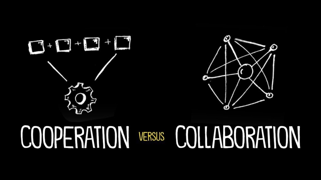 Uma premissa básica é que ao cooperar você se junta a outras pessoas para alcançar seus próprios objetivos ( ou da instituição que você representa) , que por sua vez são parte de um objetivo comum. Já ao colaborar trabalhamos juntos por um único objetivo compartilhado.